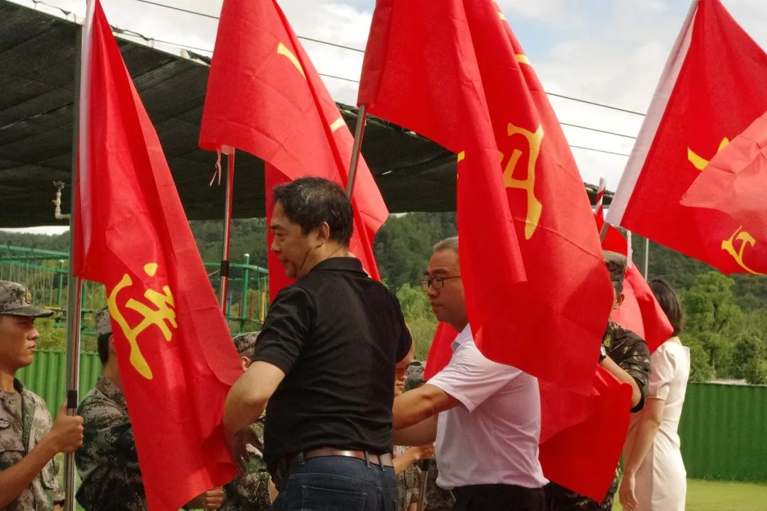➢      公司领导向各连授旗