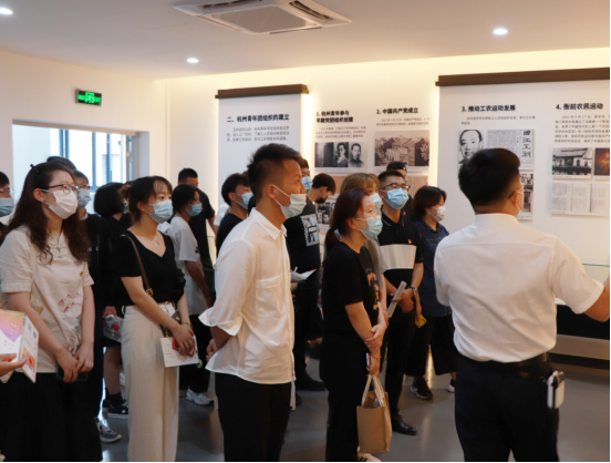 9月26日下午太阳成集团tyc522cc、培训公司党总支成员,第一、第二党支部、入党积极分子、团学骨干和2021级新生代表赴杭州青年运动史馆参观学习。