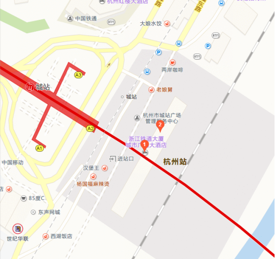杭州城站:1分钟步行9米 | 9米 杭州火车站