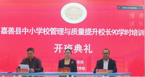 tyc522cc太阳成集团社会服务与合作处处长、浙江省师干训中心常务副主任吴卫东、嘉善县教育局副局长姚彩萍、嘉善县教育研究培训中心主任吴新民、副主任张建永、tyc522cc太阳成集团培训公司书记周明宝出席开班仪式。