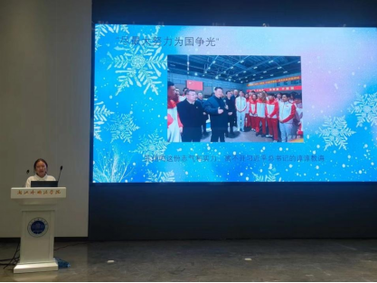 张笑笑以“弘扬‘冬奥精神’ 筑梦新时代”为题,讲述了00后奥运冠军苏翊鸣的成长历程,展现了新时代的奋斗故事和体育精神。